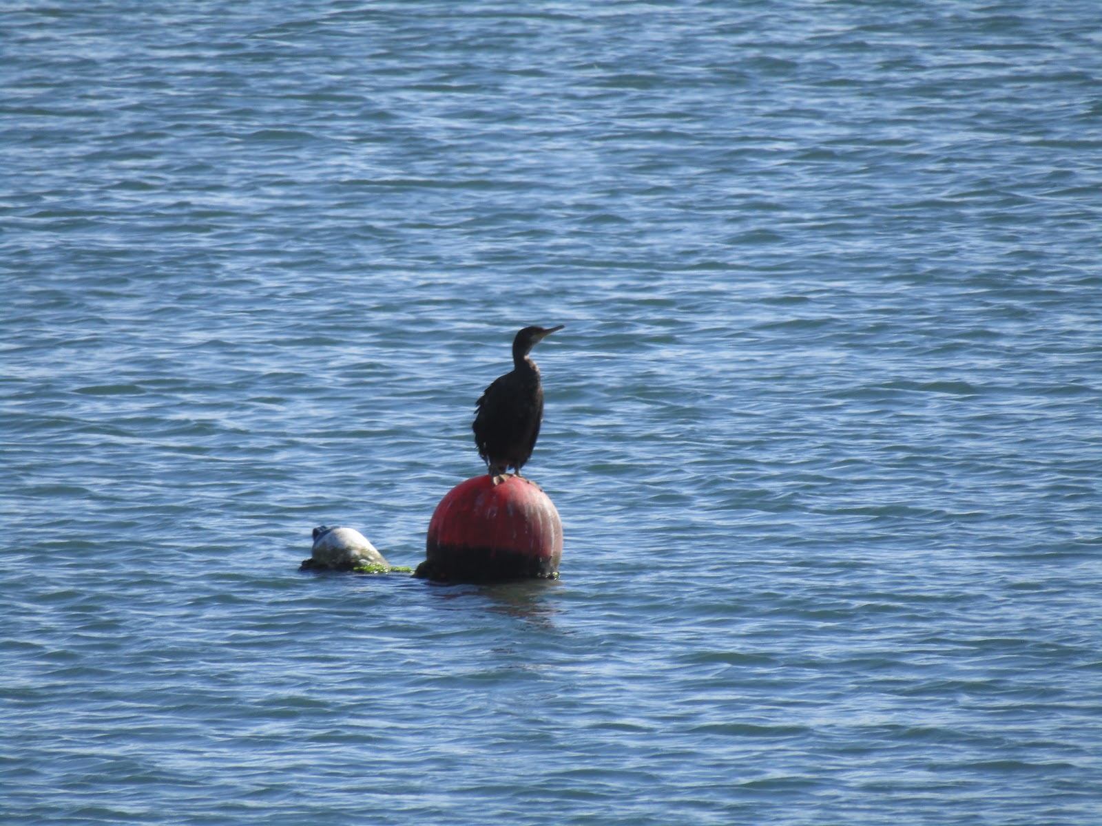Cormorán grande [Phalacrocorax carbo]Gaviotas reidoras [Chroicocephalus ridibundus].